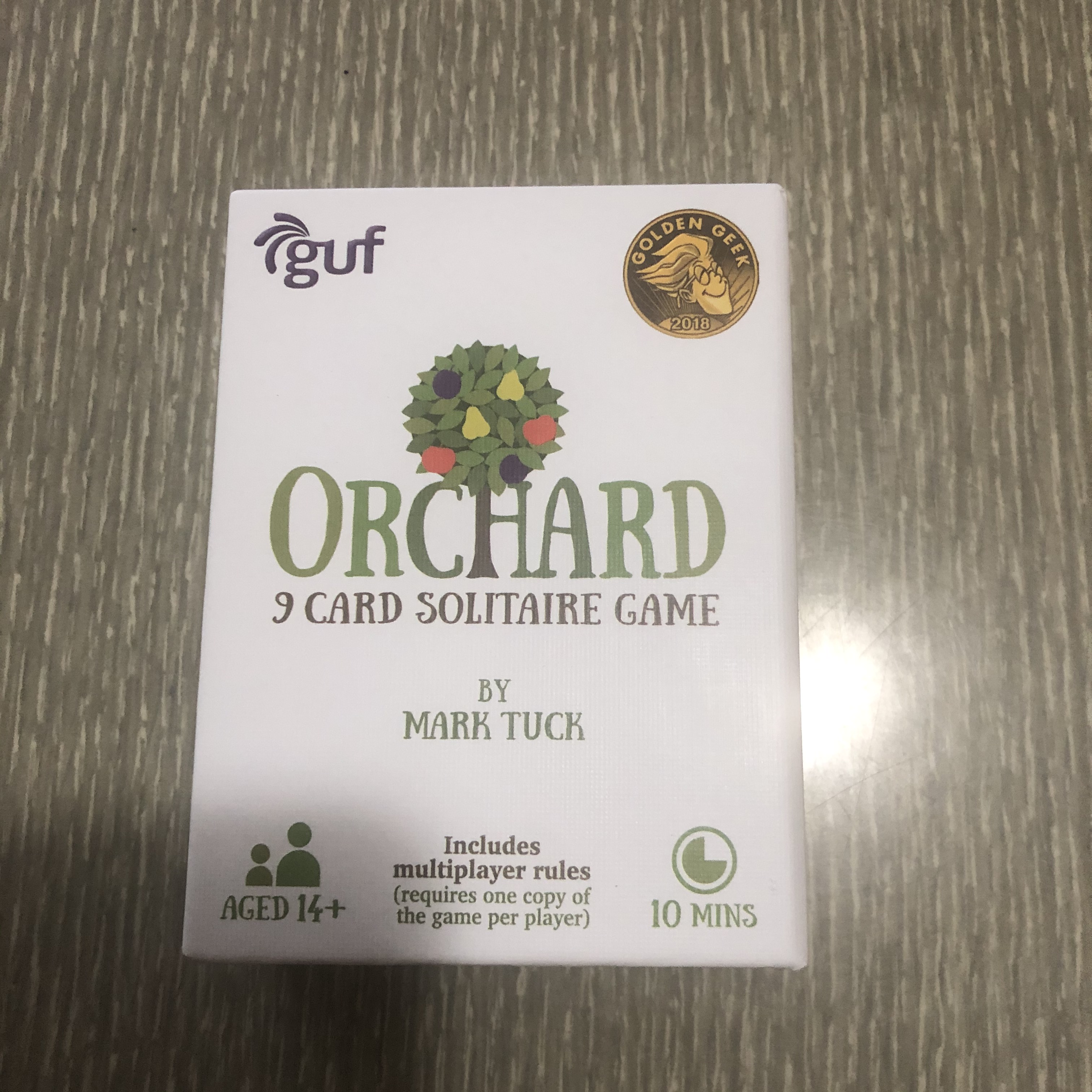 On each turn, the player plays a card such that a tree on this new card overlaps one or more matching trees on card(s) already in play. If this is the first overlap, a matching die with the 1 pip up is placed on the tree. If it is the second overlap, the die is changed to the 3 face, 6 face on the third overlap, and the 10 face on the fourth overlap. If a tree is placed on a non-matching tree, a rotten fruit token is placed on the tree instead, and cannot be overlapped and replaced by any new trees. Rotten fruit tokens can be placed up to twice per game. To end the turn, the player draws another card from the deck to bring their hand back up to 2. The game ends when the player runs out of cards or cannot legally place a card.